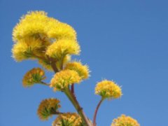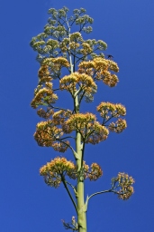 Agave arbor foliis denticulatis atque saginatis, propria terrarum sole calentium, viginti annos fere vivit, postea edit caulem florum copiosum et excedit e vita.